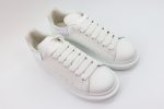 The Alexander McQueen Leather Platform Trainers Sneakers-Laser are a statement piece within the luxury fashion landscape, combining the brand’s signature edgy aesthetics with innovative design elements. These sneakers feature a premium leather upper, typically in a sleek, monochrome color palette, which is enhanced by laser-cut designs that add a modern and artistic flair to the shoe’s appearance. The intricate laser detailing not only gives these sneakers a distinctive look but also showcases the craftsmanship and avant-garde approach of Alexander McQueen.