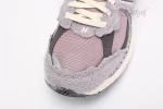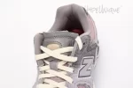 The upper section of this 2002R Protection sneaker is a mauve mesh with leather overlays in dark purple and light gray and jagged suede overlays in dusty lilac. The laces are white, the insole is red, and the New Balance branding on the side panel is a dusty lilac outlined in purple and white. The midsole and heel cushioning are made of ABZORB and the outsole is constructed with N-ergy and Stability Web.